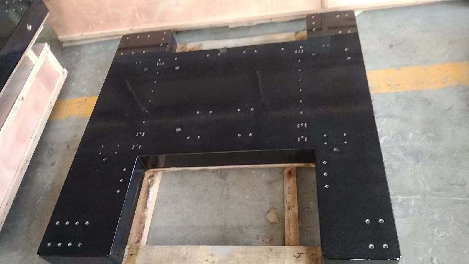 • Ultra-Span Precision Control: High-density granite or high-purity marble (calcium carbonate content ≥ 98%, density ≥ 2.75g/cm³) is selected and processed through the “CNC rough milling – multi-pass fine grinding – precision lapping” process. A single bed (base) achieves a flatness of ≤ 0.005mm per 1000mm and a guideway mounting surface straightness of ≤ 0.003mm per 1000mm. Multi-piece splicing is supported (maximum spliced size: 15000×5000mm), with a step error of ≤ 0.002mm at the splicing joint—avoiding the “mid-span sagging” deformation of metal beds with large spans (≥ 3m) and ensuring uniform machining precision across the full stroke of machine tools (e.g., ≤ 0.008mm precision for the 6m X-axis stroke of a 5-axis machining center).